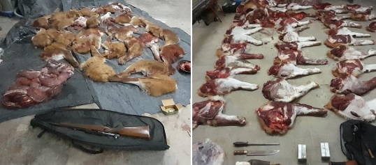 El primer caso se produjo cuando se interceptó una camioneta Ford Ranger en la Ruta Provincial Nro. 30, en el trayecto que comprende Ruta nacional Nro. 3 y localidad de Camarones y al requisarle se constató la ausencia de un permiso de caza en virtud de hallar en su interior un fusil marca Sporman calibre .308 win a cerrojo, una caja de cartuchos a bala calibre .308 win por un total de 50 cartuchos a bala marca Machtech, tres cuchillos y la suma de 24 lomos y 24 paletas de guanaco.