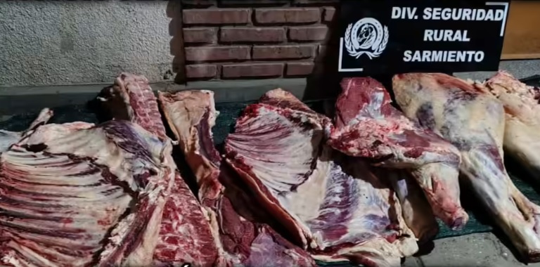 En la tarde del domingo, alrededor de las 19:20 horas, personal de la División Seguridad Rural Sarmiento —dependiente de la Unidad Regional Comodoro Rivadavia de la Policía del Chubut— interceptó una camioneta Toyota Hilux que circulaba por caminos rurales y transportaba carne vacuna y ovina en condiciones irregulares.
