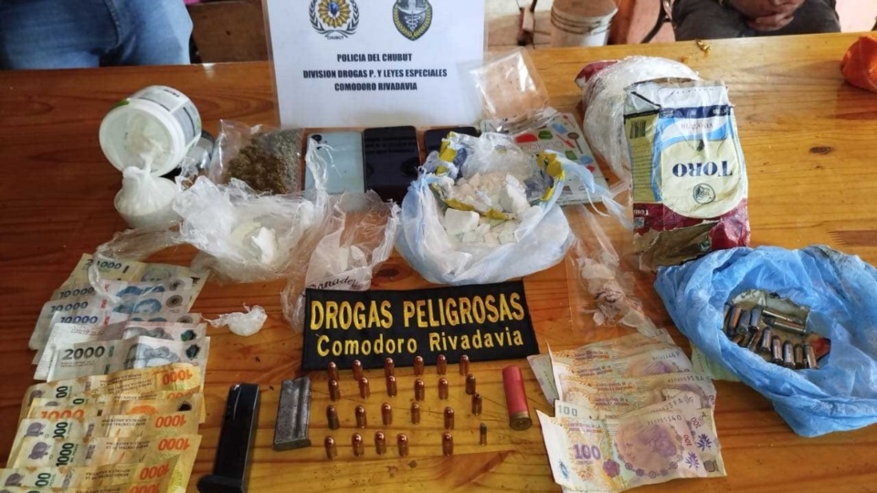 Importante golpe al narcomenudeo en la ciudad petrolera. Durante un operativo realizado este martes, la policía detuvo a un hombre y secuestró dinero en efectivo, municiones, estupefacientes, balanzas de precisión y diversos elementos utilizados para el “estiramiento” de la droga, informaron fuentes policiales.
