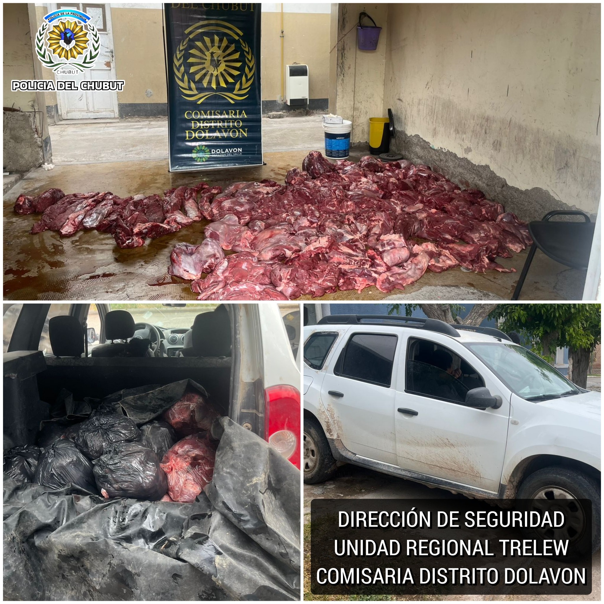 Personal de la Comisaría de Distrito Dolavon, dependiente de la Unidad Regional Trelew, realizó un operativo este jueves por la mañana que culminó con el secuestro de una importante cantidad de carne de guanaco transportada de forma irregular.