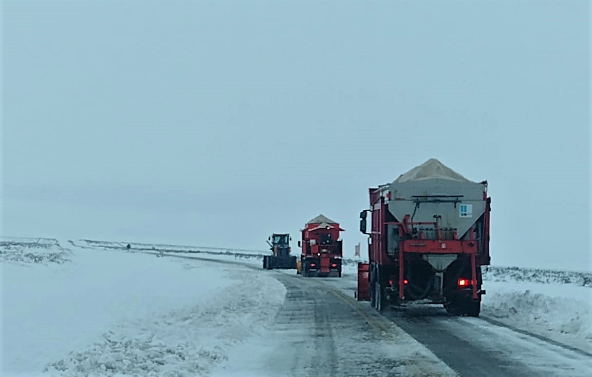 Salida 09hs: encabeza camión Barrenieve de Vialidad Nacional, seguido por vehículos pesados (camiones, colectivos). Luego siguen vehículos livianos y camionetas.