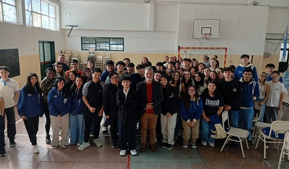 La primera de ellas tuvo lugar el viernes 28 de marzo con alumnos y alumnas de sexto año del colegio madrynense. En primer lugar, los historiadores del Instituto Patagónico de Ciencias Sociales Humanas (IPCSH-CONICET), Matías Chávez y Marcos Sourrouille, presentaron el contexto histórico en el que se llevó a cabo la última dictadura cívico-militar junto al papel que jugaron algunos medios de comunicación y las versiones contrastantes entre lo publicado y la realidad.