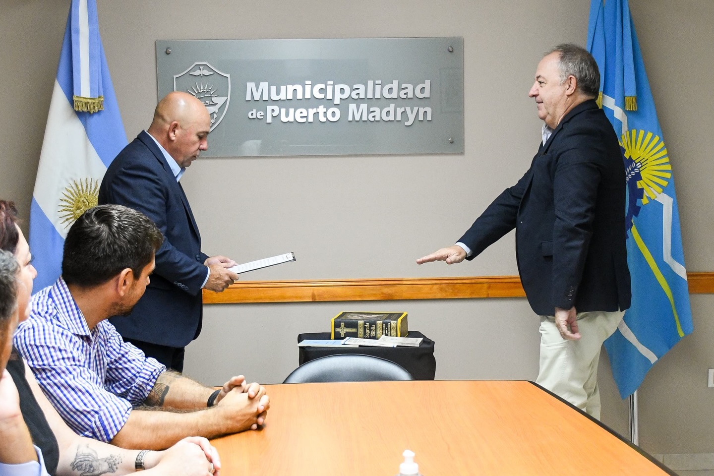 El intendente de Puerto Madryn, Gustavo Sastre, encabezó en la mañana de este viernes el acto de asunción de Eduardo Arzani, quien quedó formalmente al frente de la Secretaría de Producción, Innovación y Empleo del Municipio.
