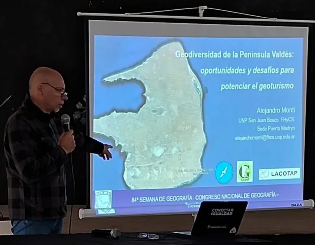 El pasado 1 de noviembre en el marco del Congreso Nacional de Geografía realizado en la ciudad de Trevelin el docente investigador Alejandro Monti expuso su trabajo sobre Geodiversidad de la Península Valdés: oportunidades y desafíos para potenciar el geoturismo.