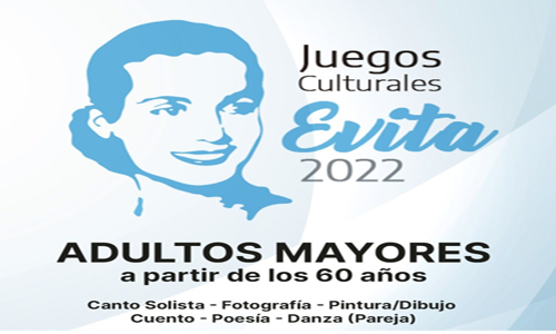 La Subsecretaría de Cultura de la Municipalidad de Puerto Madryn invita a los adultos mayores de 60 años a participar de la edición 2022 de los Juegos Culturales Evita.