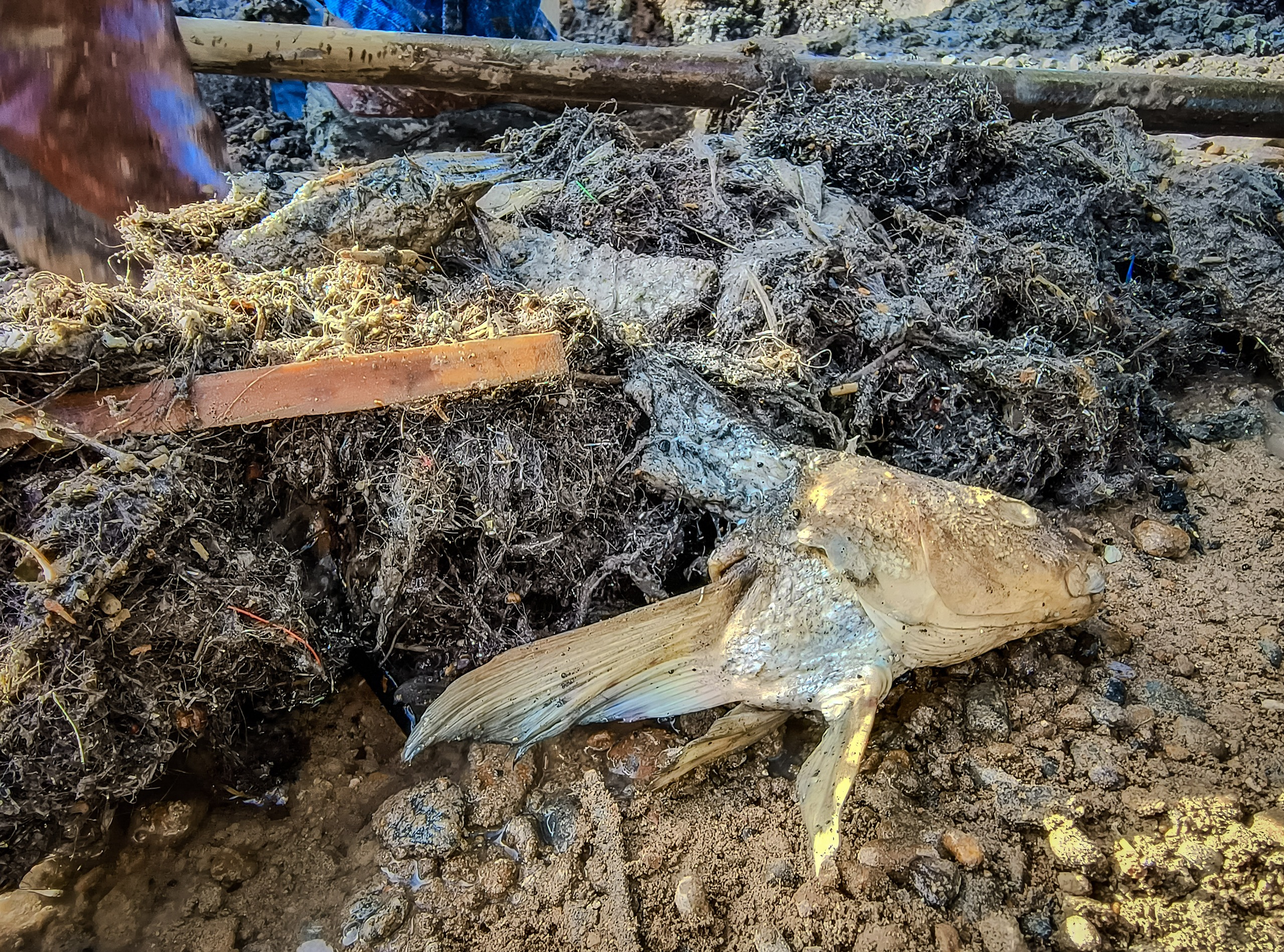 En este caso, se pudo extraer de la boca de registro una gran cantidad de viruta metálica, que seguramente proviene de algún taller y restos de pescado. No existe posibilidad técnica que los colectores cloacales funcionen en estas condiciones. Repetimos, están solo diseñados para el transporte de efluentes y no de restos de construcción, ramas, trapos, pañales y mucho menos para desechar basura proveniente de actividades comerciales, como lo es viruta metálica y pescado.