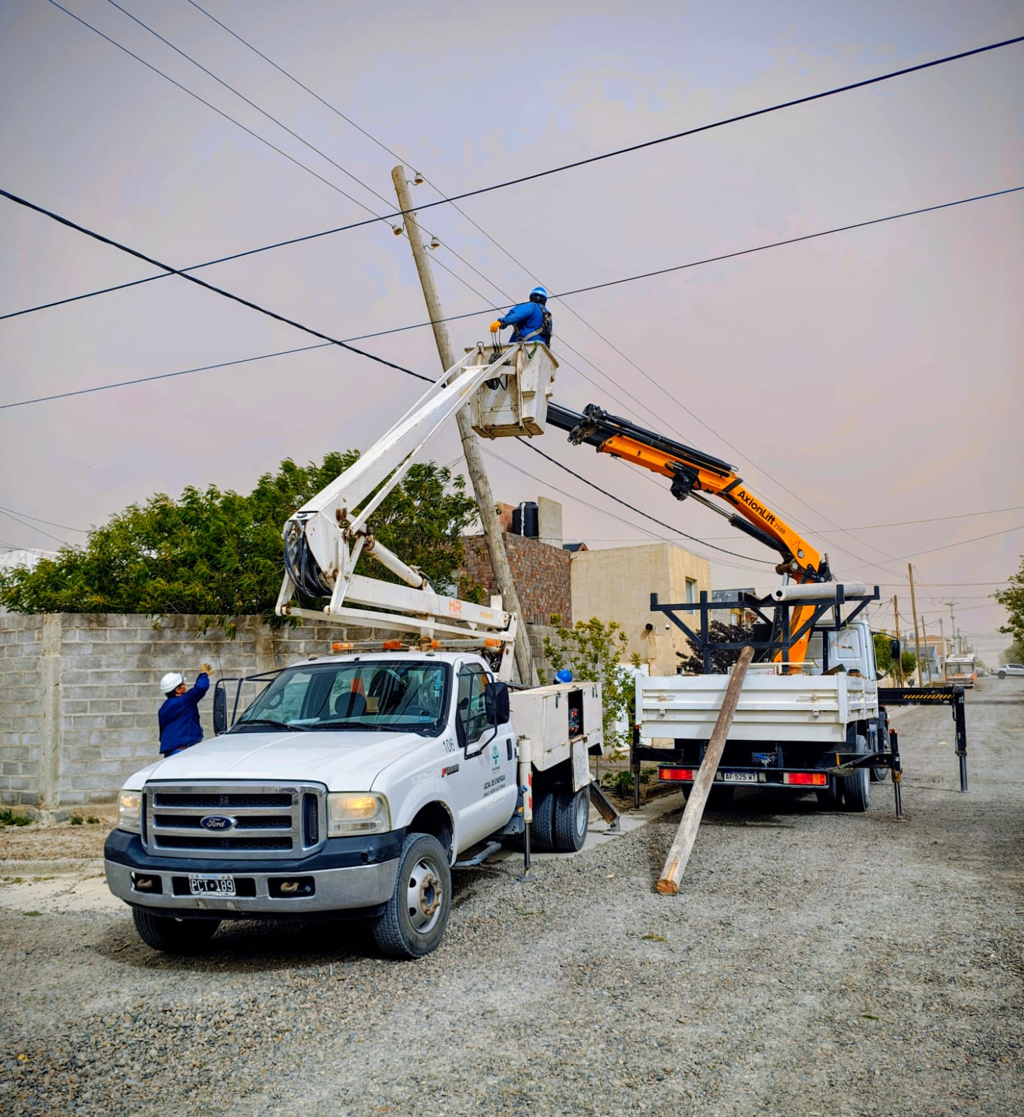 Debido al fuerte temporal de viento que azota Puerto Madryn, se registra una cantidad importante de postes caídos en distintos puntos de la ciudad. Las intensas ráfagas provocan, la rotura de postes y esto a su vez genera que se accionen los mecanismos de protección de los Distribuidores. Para afrontar las consecuencias del temporal, la Cooperativa tiene a todo su personal en funciones, trabajando contra reloj para reponer el servicio.