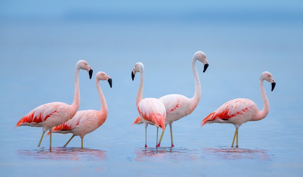 Durante gran parte del año, quienes caminan por las playas del sur de Puerto Madryn pueden divisar cientos de flamencos, un ave que es imposible que pase desapercibida, no solo por su tamaño, sino también por su belleza. Más allá de contemplarlos, también es bueno conocer un poco más sobre esta especie y es por ello que Luciana Musmeci, investigadora del Instituto de Diversidad y Evolución Austral (IDEAus-CONICET), explica algunas de las características de estos animales: “La especie que tenemos en la zona es el Flamenco Austral (Phoenicopterus chilensis). En general están asociados a distintos tipos de humedales y nuestros intermareales se incluyen dentro de esos humedales, donde tienen la disponibilidad de alimento que necesitan. En general comen pequeños invertebrados incluyendo crustáceos, insectos, larvas, también pequeñas algas, entre otros. En el pico tienen unas pequeñas laminillas y una lengua cónica que les permiten filtrar, por eso uno los ve que mueven con las patas y hacen oscilaciones con la cabeza y el pico”.
