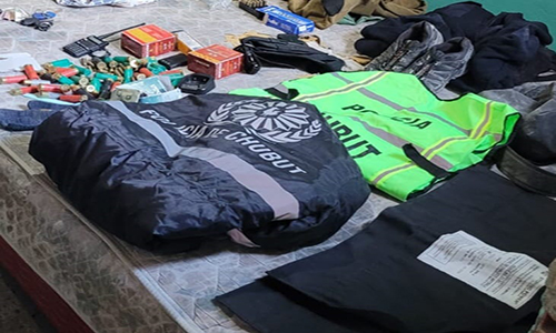 También se secuestraron elementos de cortes varios como amoladores, discos y otros efectos; dos chalecos balísticos pertenecientes a la Policía del Chubut; prendas pertenecientes a uniforme policial, como ser campera, chaqueta, chaleco refractario, correaje con pistolera, y placa de identificación; un centenar de municiones de diferentes tipos y calibres y otros elementos de sumo interés para la investigación que serán preservados y peritados.