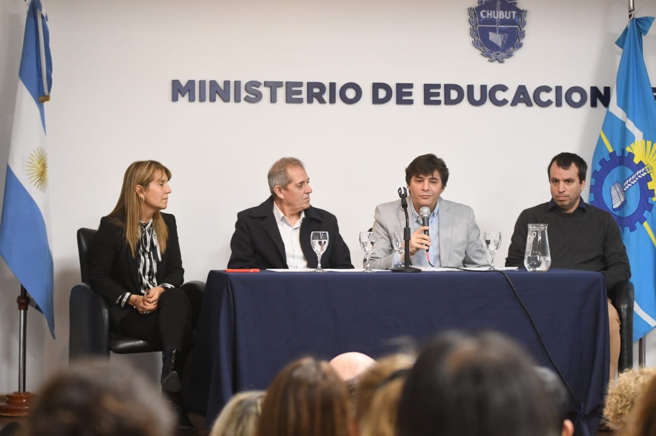 En este marco, se firmó un acuerdo de colaboración interinstitucional, del cual participaron el ministro de Educación, José Luis Punta; el decano de la Facultad de Ciencias Económicas de la UNPSJB, Julio Ricardo Ibáñez; la presidenta del Consejo Profesional de Ciencias Económicas del Chubut, María Victoria Vernetti; y el secretario del Consejo Profesional de Ciencias Económicas del Chubut, Sebastián Andrés Suárez.