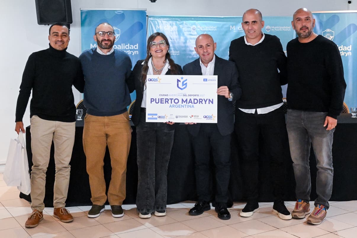 El intendente de Puerto Madryn, Gustavo Sastre, encabezó esta mañana el acto en el que se oficializó la candidatura de Puerto Madryn como Ciudad Americana del Deporte 2027, en el marco de las distintas acciones que impulsa la fundación ACES, que aborda estas temáticas en todo el mundo.