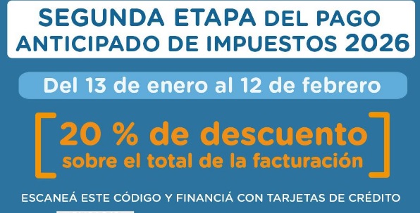 La Municipalidad de Puerto Madryn informó que continúa activa la segunda etapa del Pago Anticipado Anual de Impuestos 2026, una modalidad que permite a los contribuyentes acceder a un 20% de descuento sobre el total de la facturación.