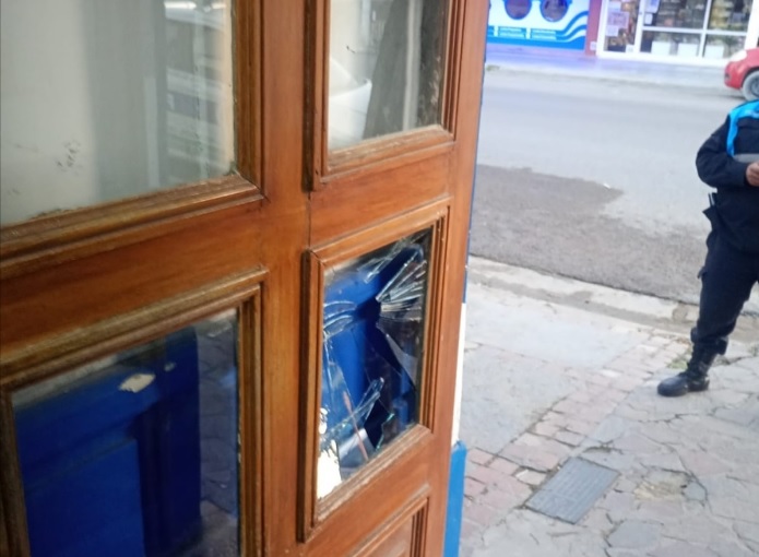 En ese momento, los uniformados observaron a un individuo que propinaba un golpe de puño directamente al cristal de la puerta de ingreso de la comisaría, provocando la rotura del mismo. El agresor sufrió un corte superficial en su mano izquierda a causa del impacto.