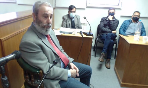 El principal testigo de la mañana fue el Dr. Mantegna, quien fue presidente del ISSyS y se ha visto involucrado de manera directa en el caso a partir de la discusión respecto a la validez o no de una firma suya en documentación que acreditaría la propiedad de los lotes al Círculo Policial.