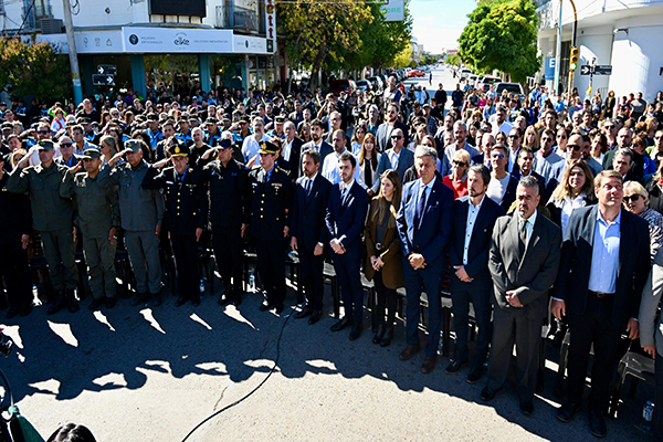 «Esa solución excepcional la encontramos uniéndonos todos para combatir el flagelo de la inseguridad y la escalada de violencia en nuestra provincia”, expresó Torres durante la presentación que encabezó junto al intendente local, Gerardo Merino; el vicegobernador Gustavo Menna; el secretario de Seguridad de la Nación, Vicente Ventura; el ministro de Seguridad de la provincia, Héctor Iturrioz; y el jefe de la Policía del Chubut, Andrés García.
